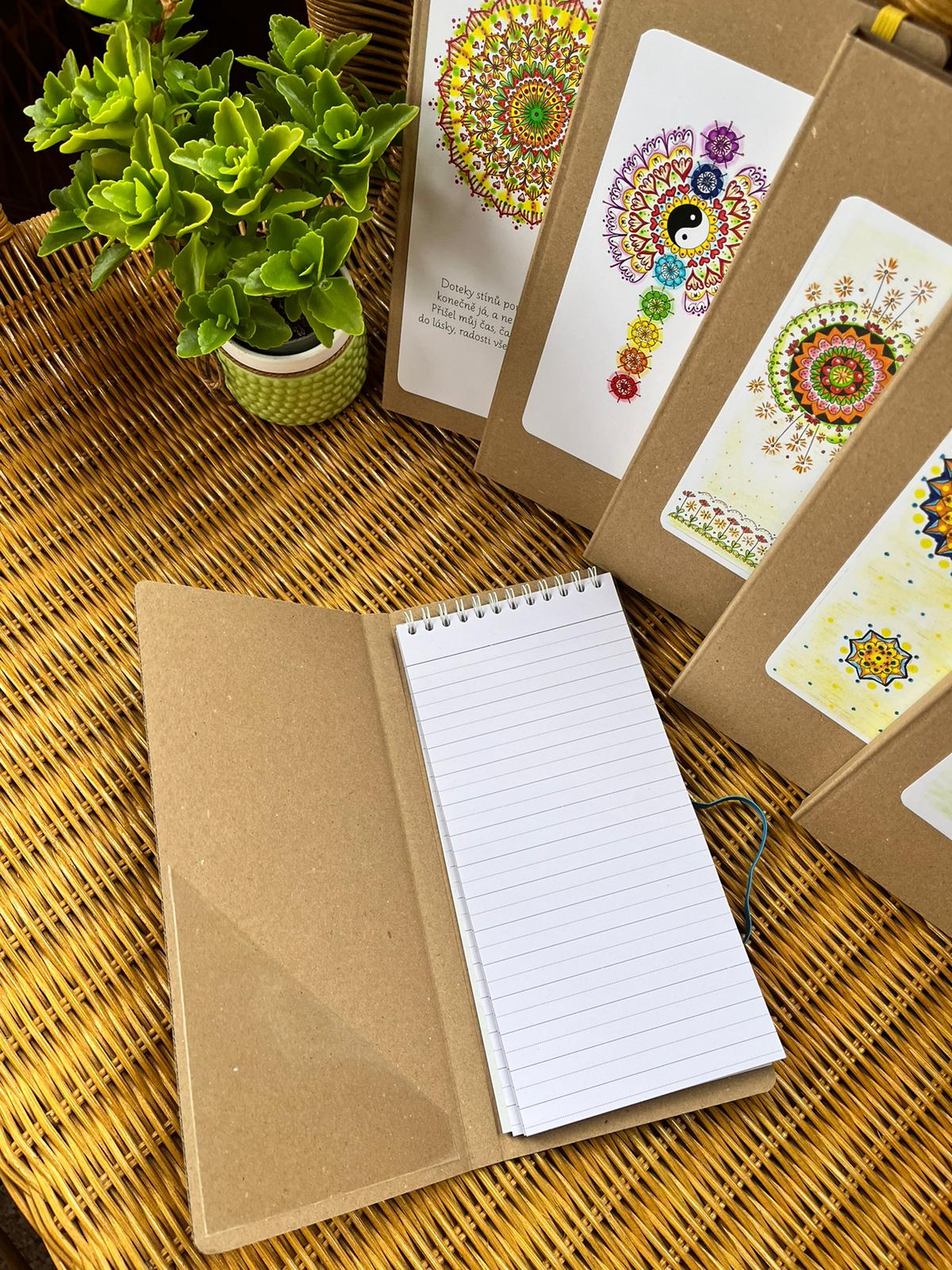Velikost A4 s motivem čtyřlístku, v menší velikosti na výběr více druhů mandal.
