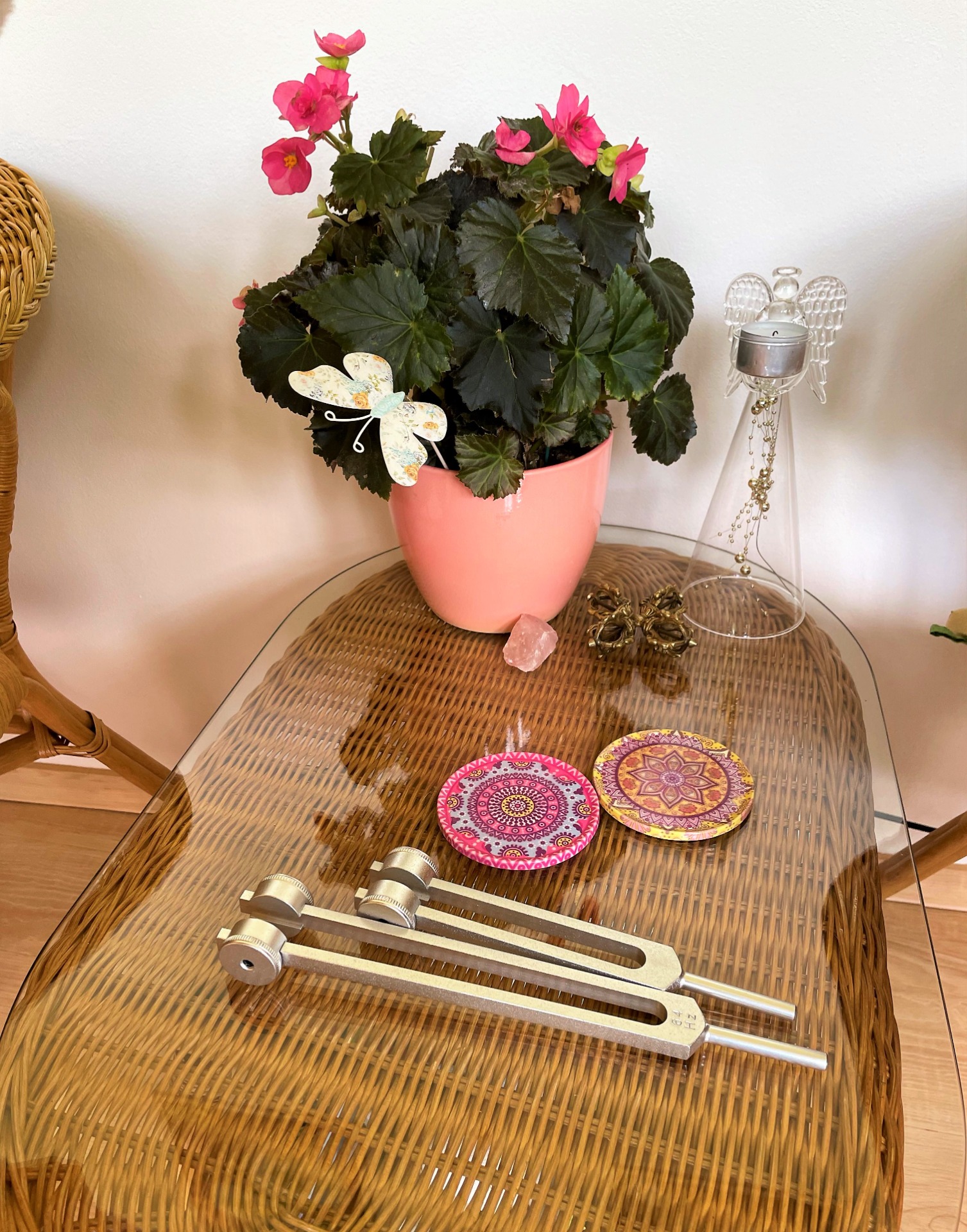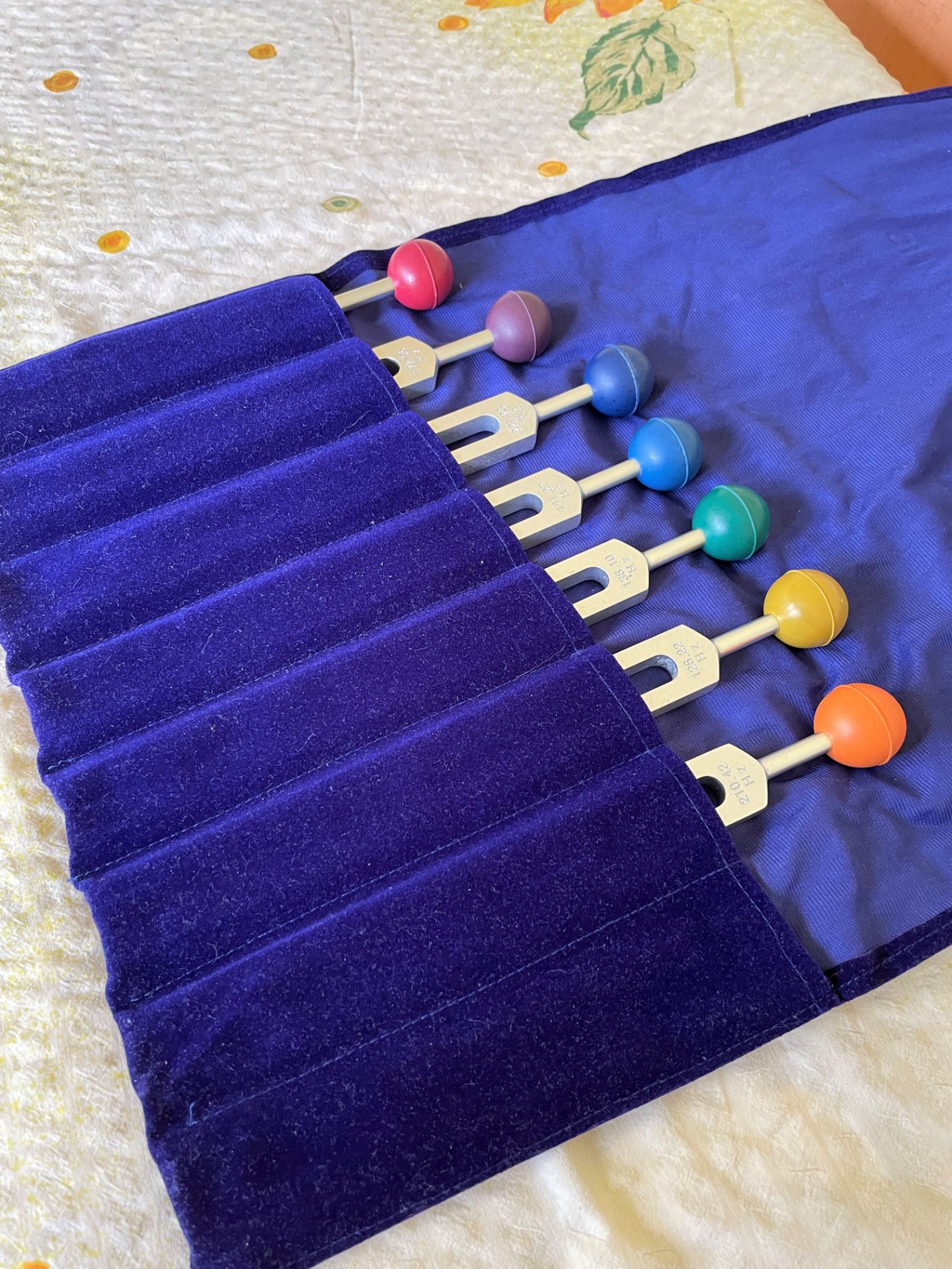 K harmonizaci těla i mysli používám nejrůznější nástroje, například deštné sloupy, terapeutické ladičky, solfeggio tuby či různé zvonkohry.